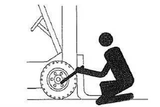 2.在與所要更換輪胎相對(duì) 的輪胎下面放置墊塊。